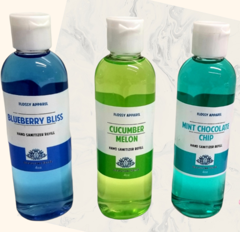 Flossy Apparel Hand Sanitizer is made with FDA/WHO formulation of 80% Alcohol, Hydrogen Peroxide (H2020) and Glycerin. Our naturally scented formulation gives the aromatic feel of refreshing comfort. Our refillable bottle holds up to 118ml of scented sanitizer AND is refillable. It’s important to Flossy that we do our part in protecting the environment by not having our bottles end up in the landfill; reuse and recycle. Join us in enjoying our product which is:
