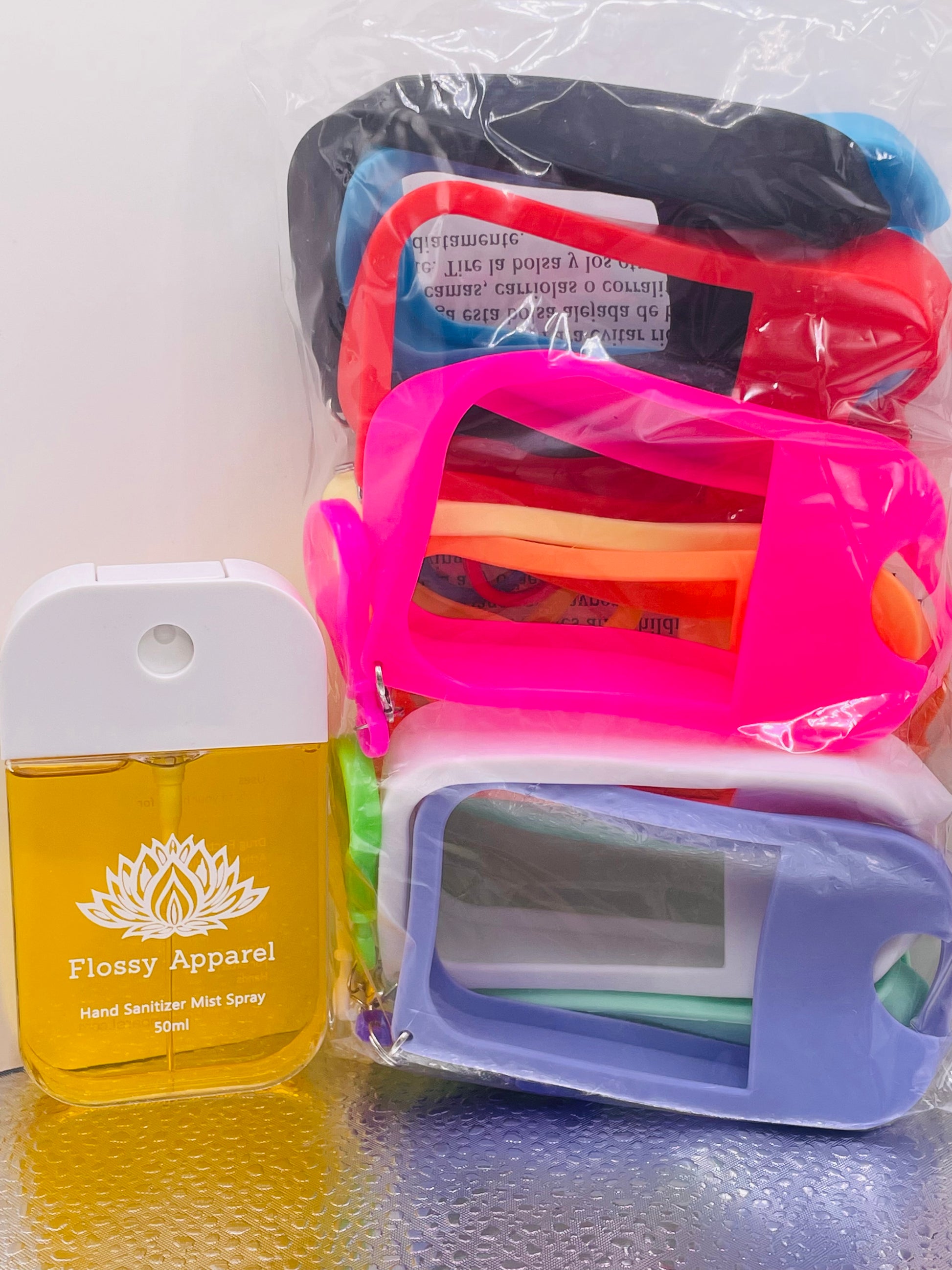 Flossy Apparel Refillable Hand Sanitizer base is made with FDA/WHO formulation of 80% Alcohol, Hydrogen Peroxide (H2020) and Glycerin. Our naturally scented formulation gives the aromatic feel of refreshing comfort. Our refillable sanitizer sprayer holds up to 50 ml of scented sanitizer AND is refillable. It’s important to Flossy that we do our part in protecting the environment by not having our bottles end up in the landfill; reuse and recycle. Join us in enjoying our product which is:Â