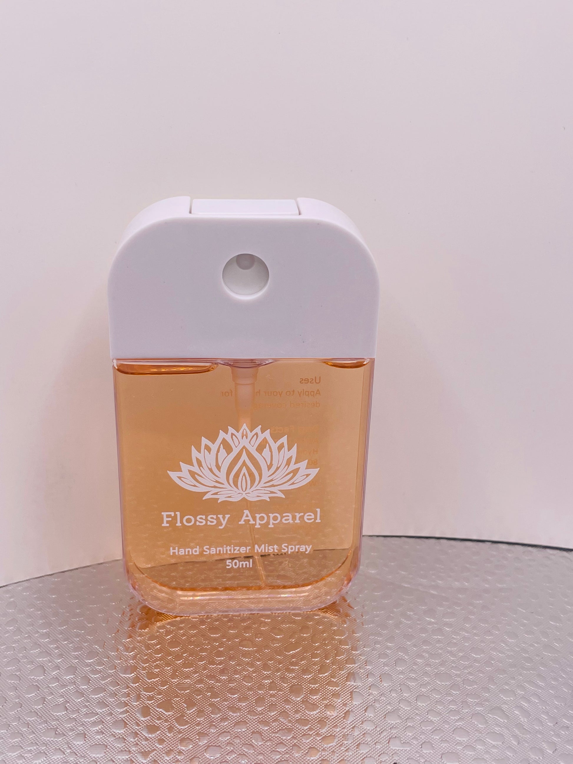 Flossy Apparel Refillable Hand Sanitizer base is made with FDA/WHO formulation of 80% Alcohol, Hydrogen Peroxide (H2020) and Glycerin. Our naturally scented formulation gives the aromatic feel of refreshing comfort. Our refillable sanitizer sprayer holds up to 50 ml of scented sanitizer AND is refillable. It’s important to Flossy that we do our part in protecting the environment by not having our bottles end up in the landfill; reuse and recycle. Join us in enjoying our product which is:Â